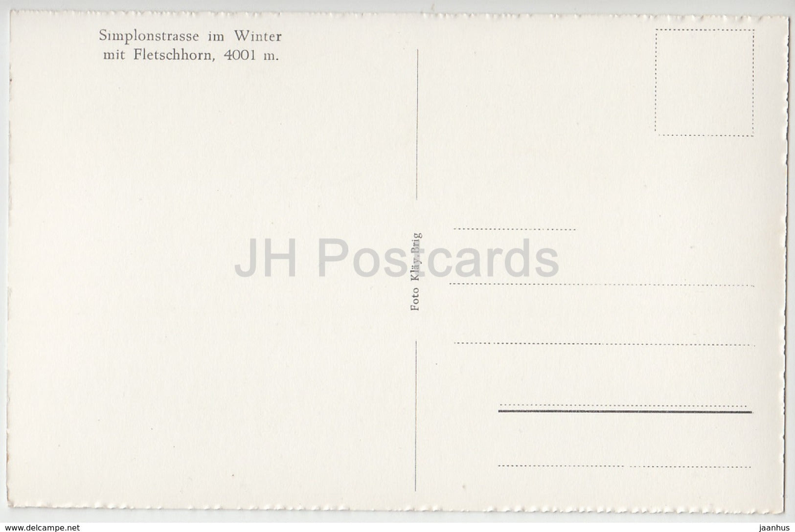 Simplonstrasse im Winter mit Fletschhorn 4001 m - Schweiz - alte Postkarte - unbenutzt
