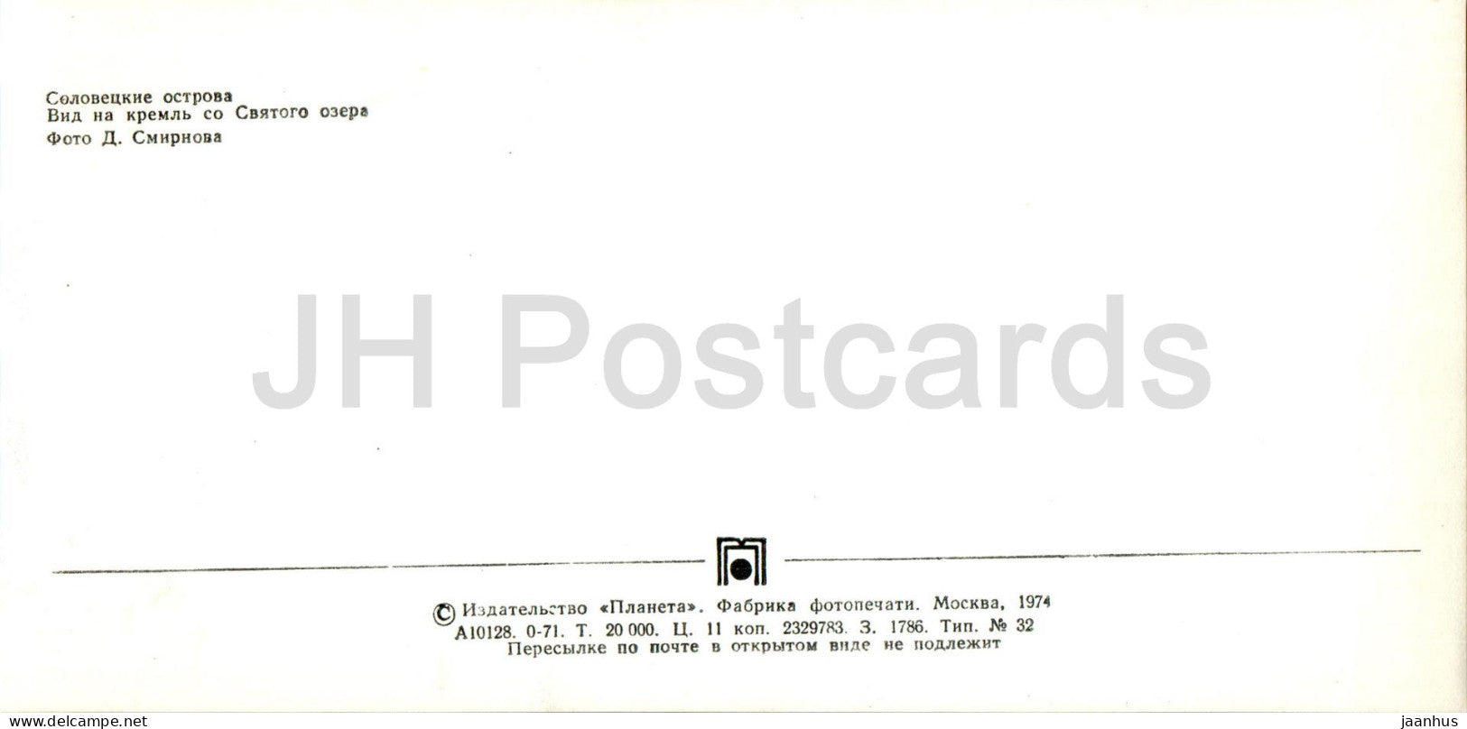 Solowezki-Inseln – Blick auf den Kreml vom Swjataja-See – 1974 – Russland UdSSR – unbenutzt