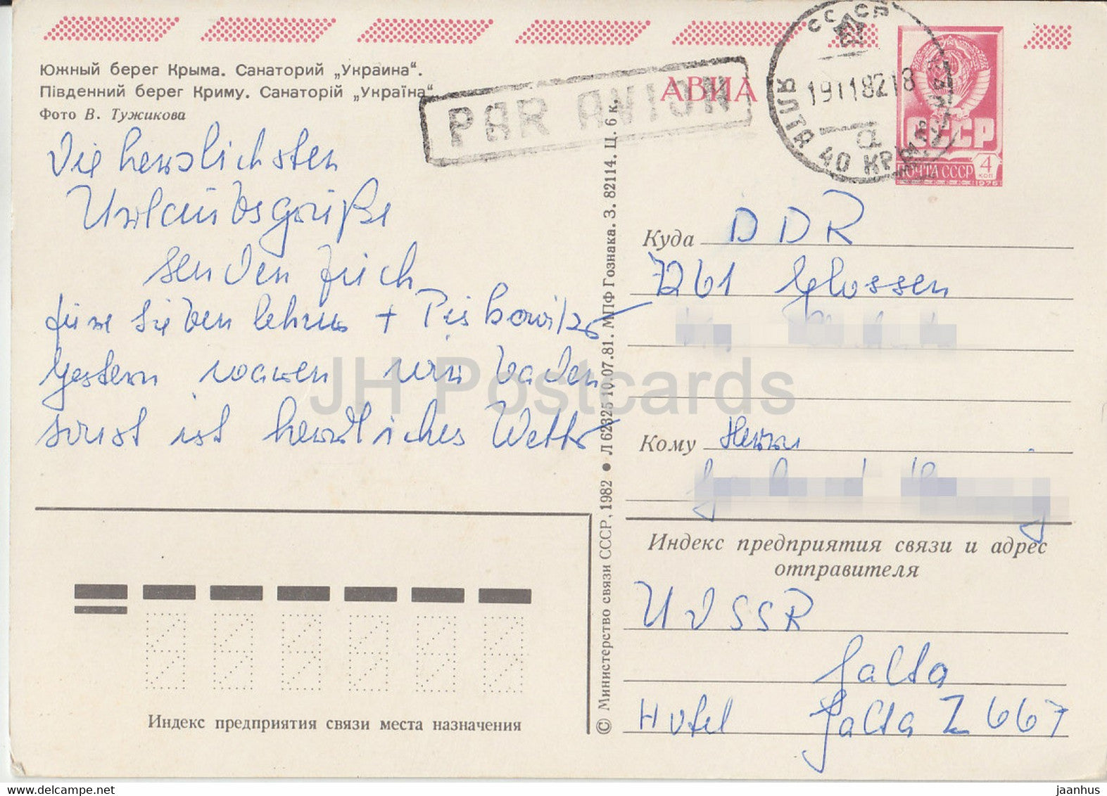 Südküste der Krim - Sanatorium Ukraina - Ganzsache - AVIA - 1982 - Ukraine UdSSR - gebraucht