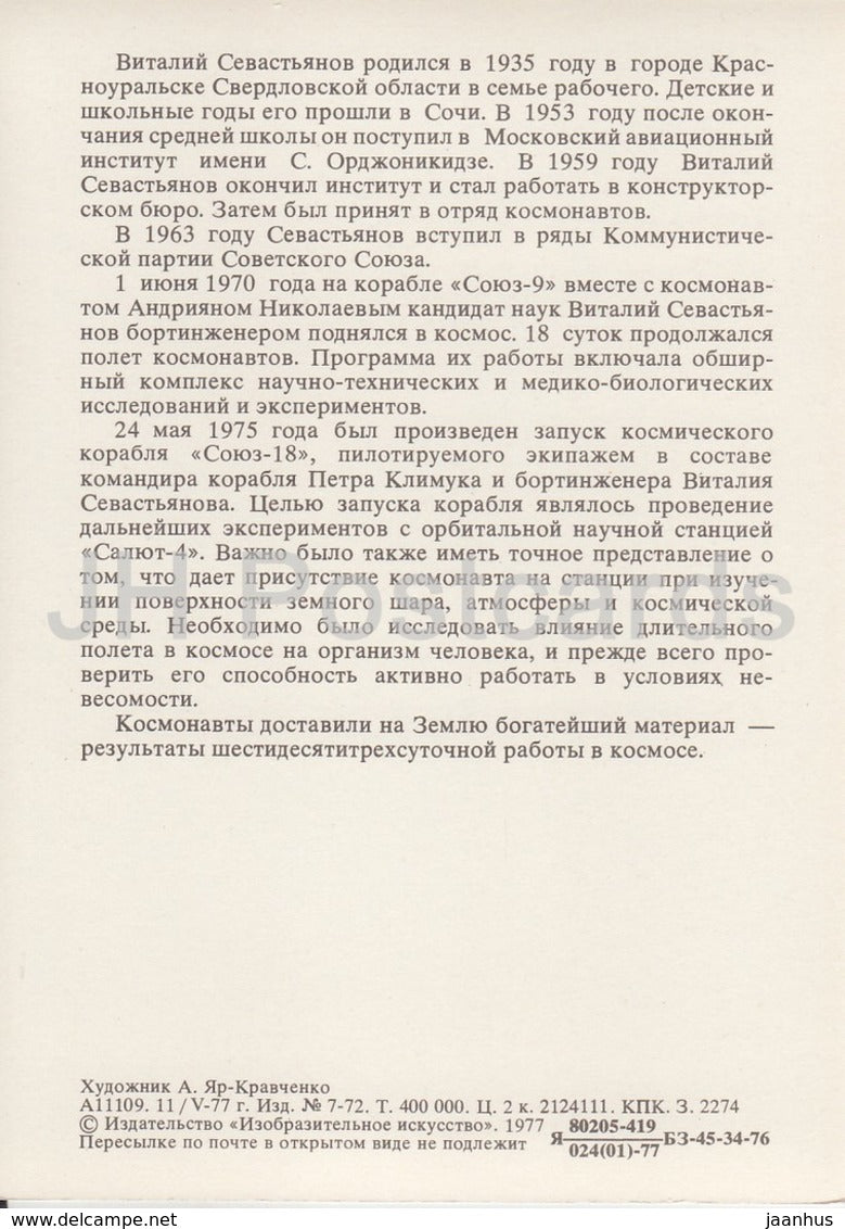 Sowjetischer Kosmonaut Vitaly Sevastyanov – Weltraum – 1977 – Russland UdSSR – unbenutzt