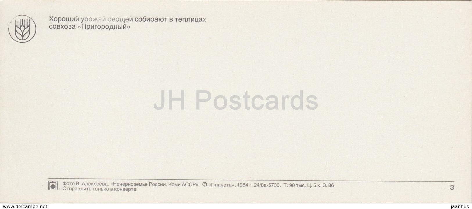 Sovkhoz Prigorodnyi Gewächshäuser – Tomate – Gurke – Republik Komi – 1984 – Russland UdSSR – unbenutzt