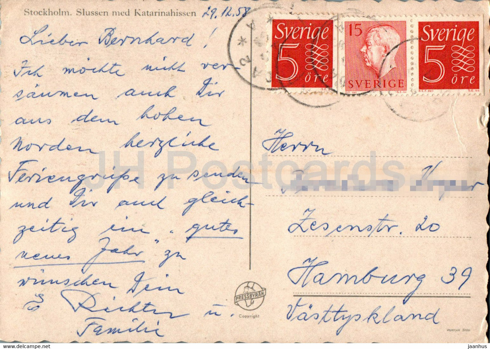 Stockholm - Slussen med Katarinahissen - Straßenbahn - alte Postkarte - 1958 - Schweden - unbenutzt