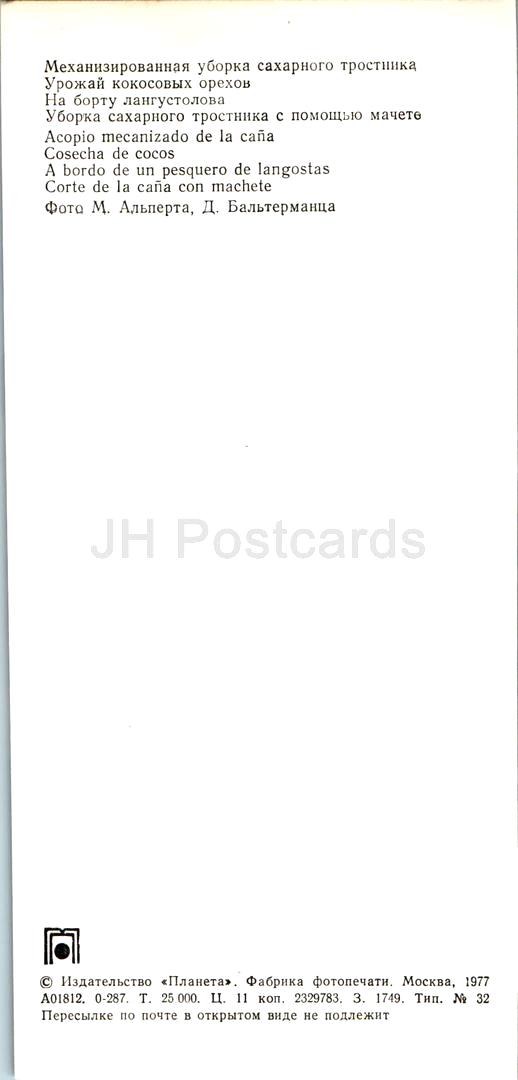 Zuckerrohrernte – Kokosnussernte – an Bord des Hummerboots – Erntemaschine – Auto – 1977 – Kuba – unbenutzt