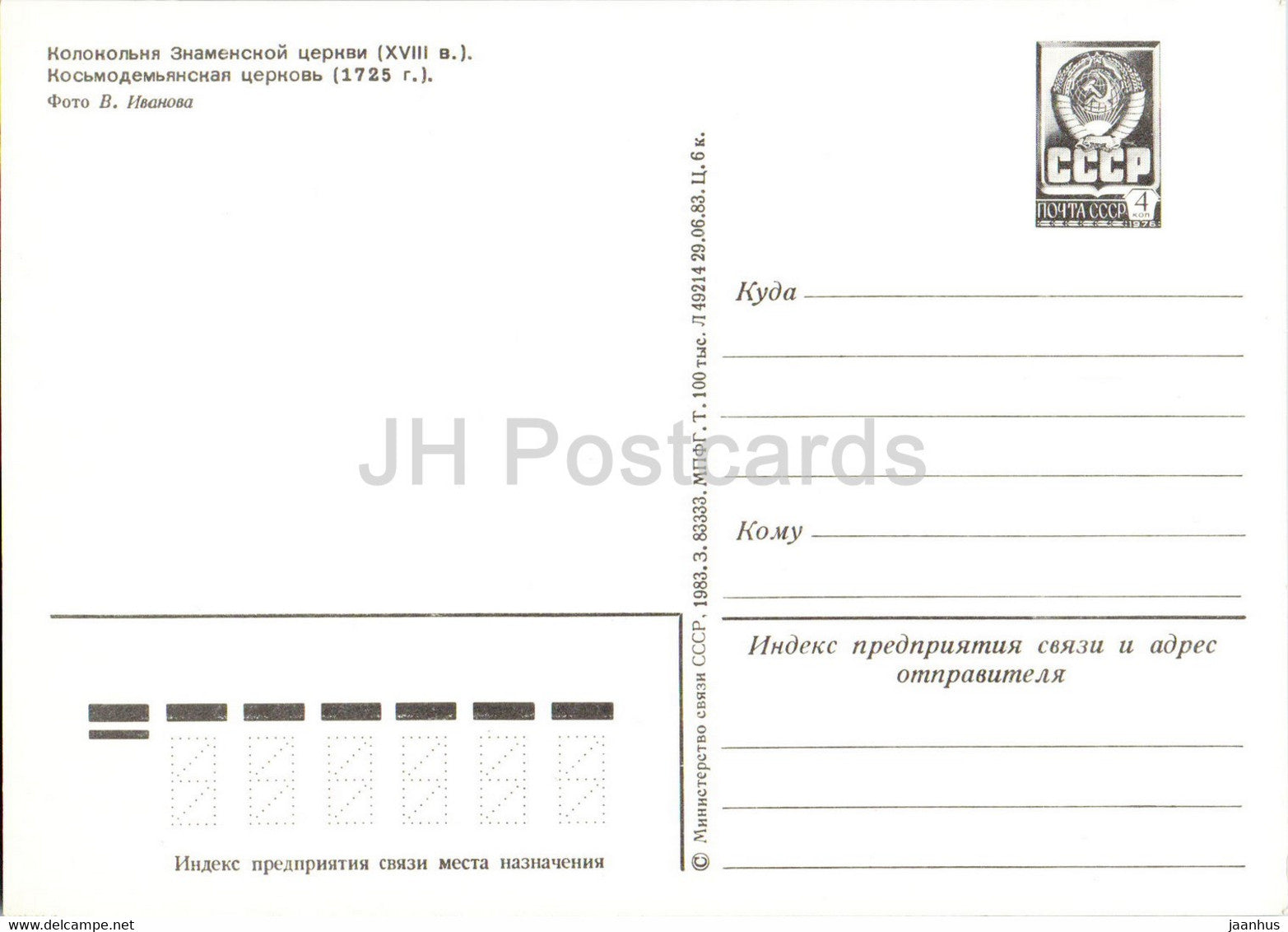Susdal - Glockenturm der Snamenskaja-Kirche - Kosmodemjanskaja-Kirche - Ganzsache - 1983 - Russland UdSSR - unbenutzt