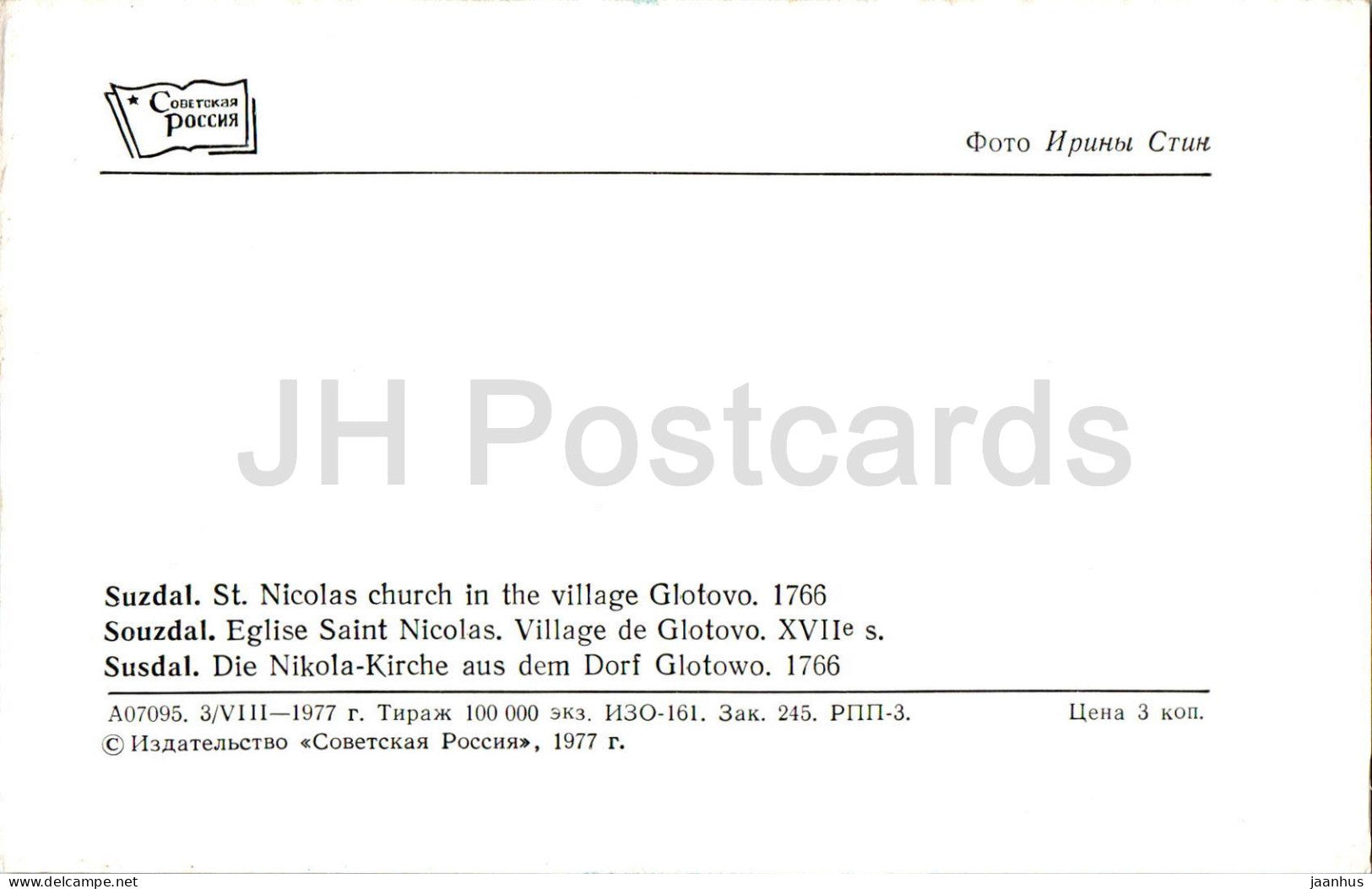 Susdal – St.-Nikolaus-Kirche im Dorf Glotovo – 1977 – Russland UdSSR – unbenutzt