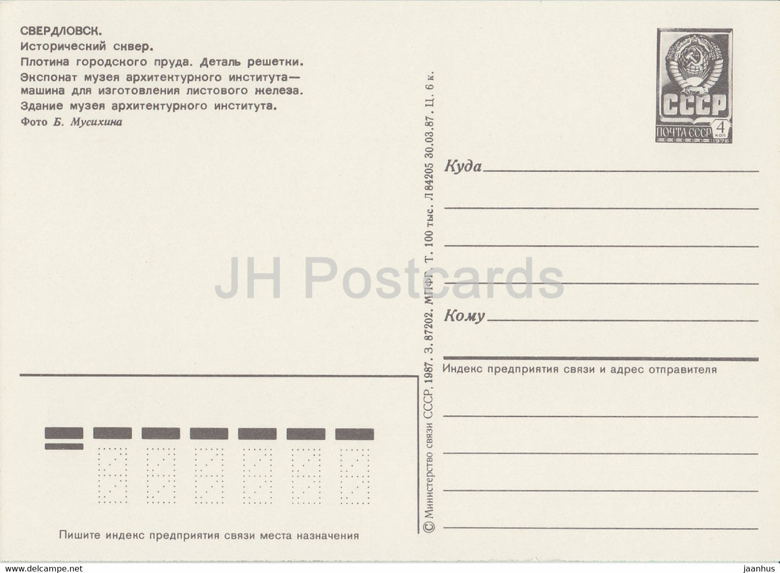 Swerdlowsk - Jekaterinburg - Historischer Platz - Stadtteichdamm - Museum - 1987 Russland UdSSR - unbenutzt
