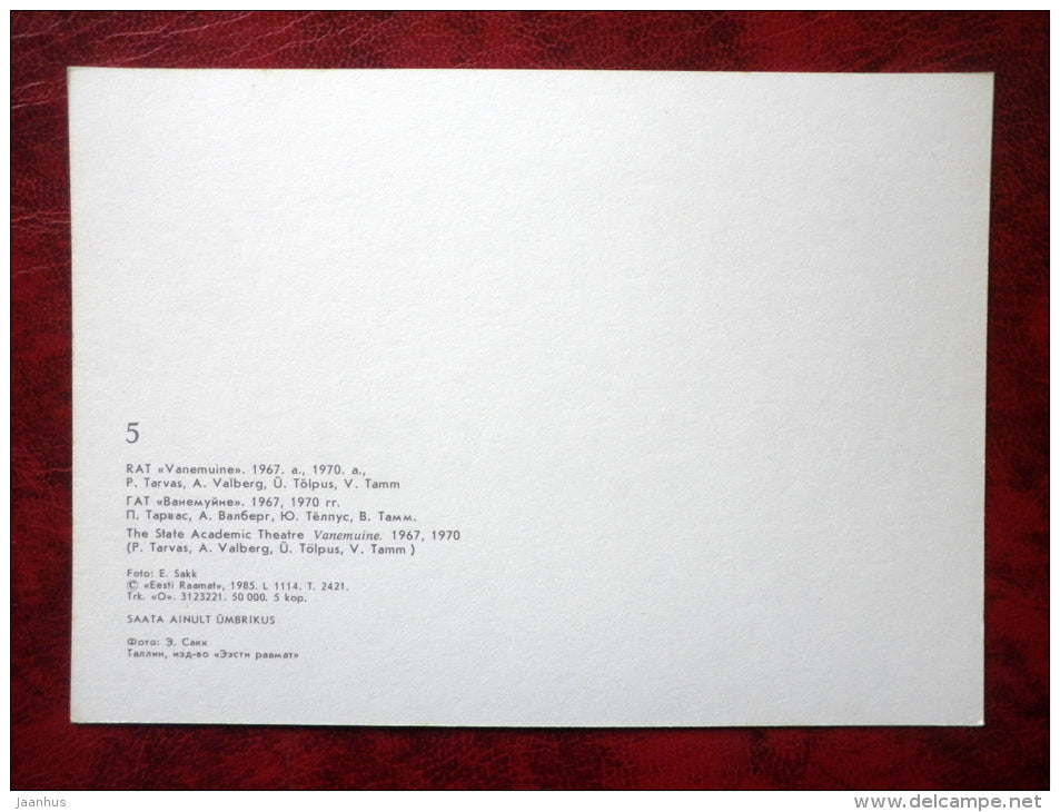 Tartu – Theater Vanemuine – Transport – Autos – Bus – 1985 – Estland – UdSSR – unbenutzt