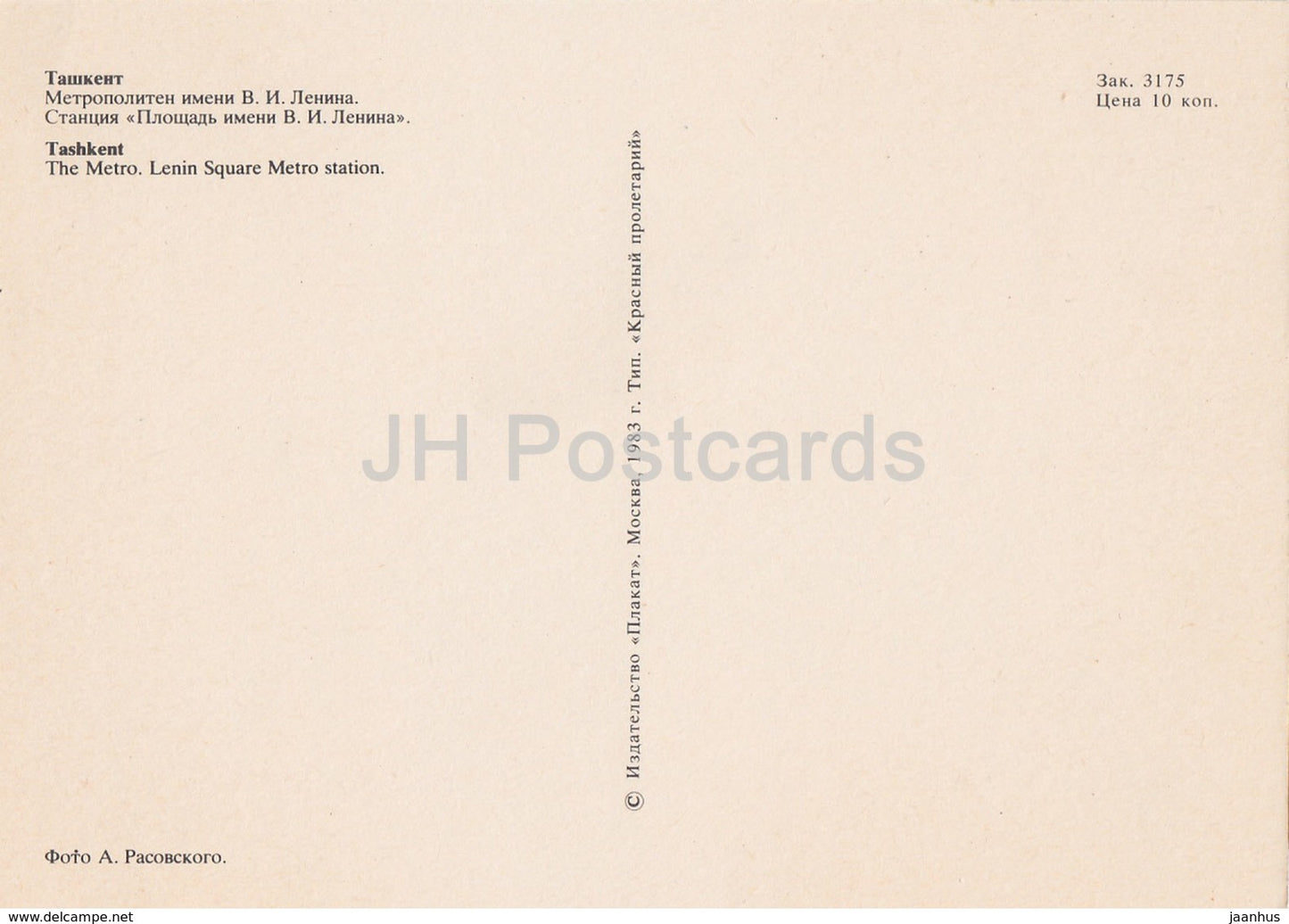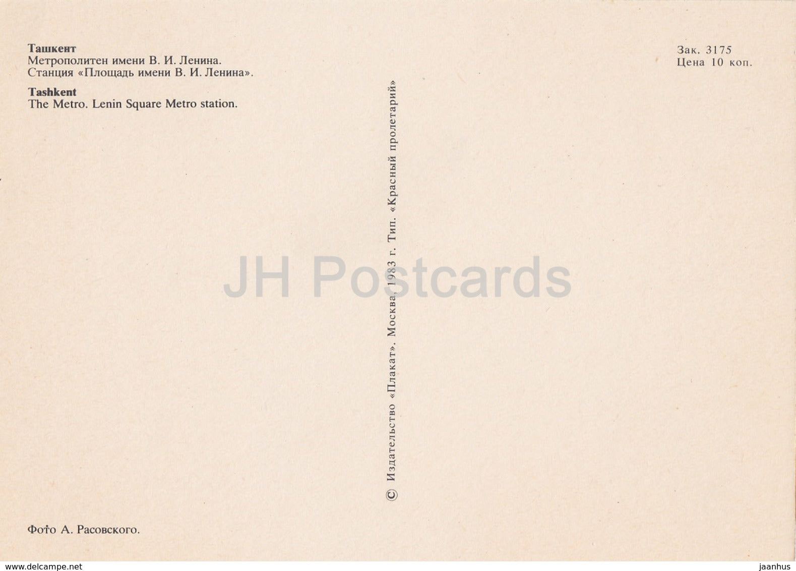 Taschkent – Die Metro – U-Bahn-Station Lenin-Platz – 1983 – Usbekistan UdSSR – unbenutzt