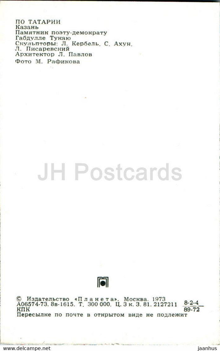 Tatarstan – Kasan – Denkmal für die Dichterin Gabdulla Tukay – 1973 – Russland UdSSR – unbenutzt