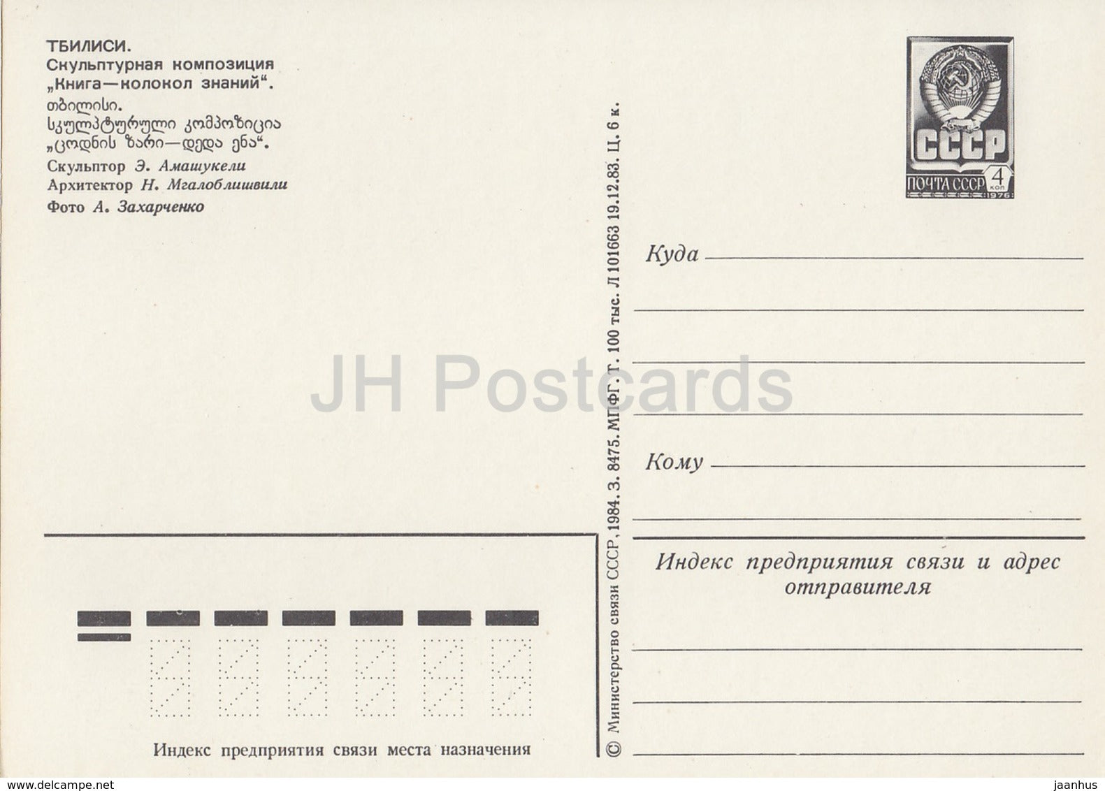 Tiflis - Skulpturale Komposition Buch - Glocke des Wissens - Ganzsachen - 1984 - Georgien UdSSR - unbenutzt