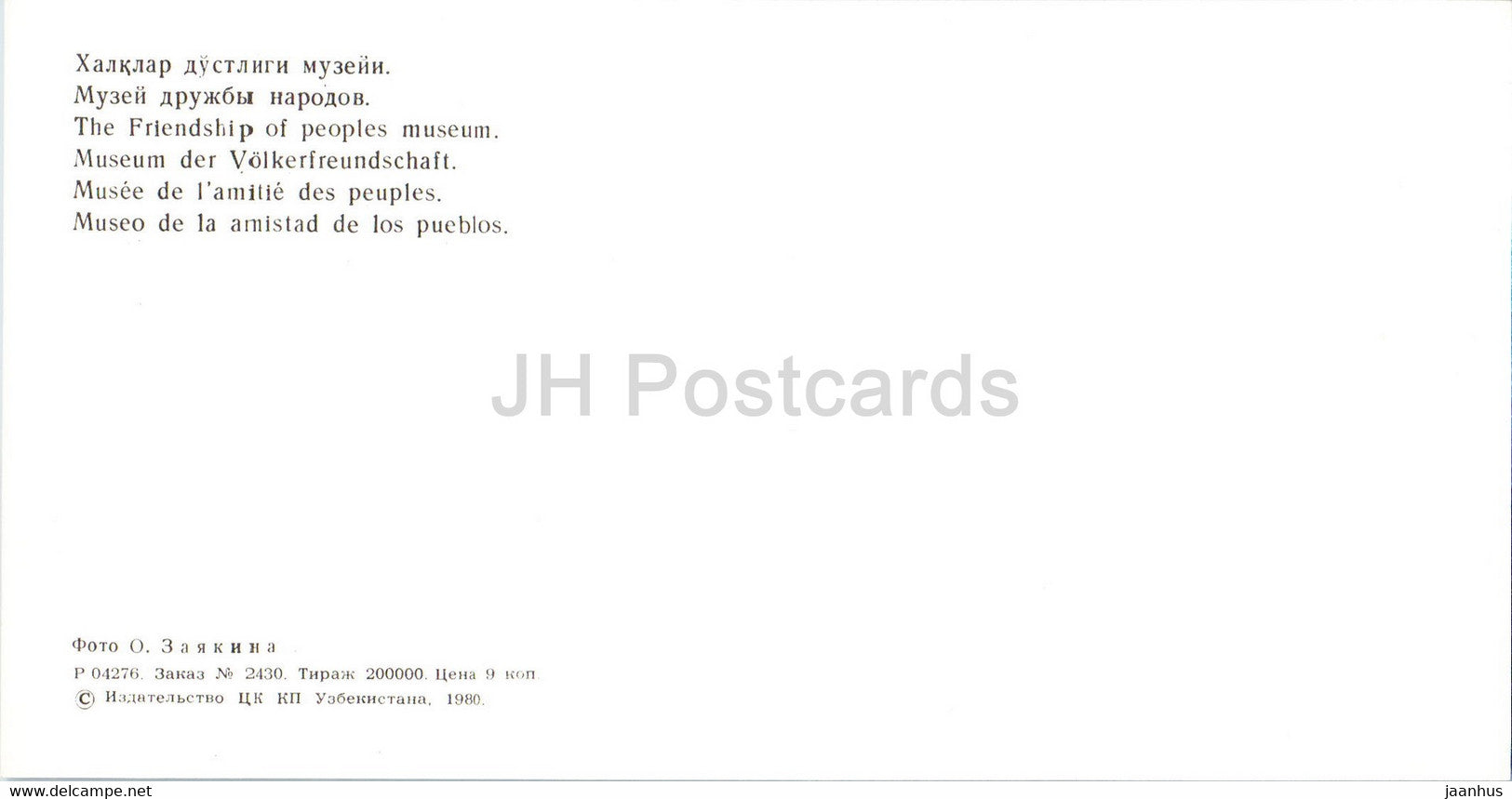 Das Museum der Völkerfreundschaft – 1 – Taschkent – Toshkent – 1980 – Usbekistan UdSSR – unbenutzt