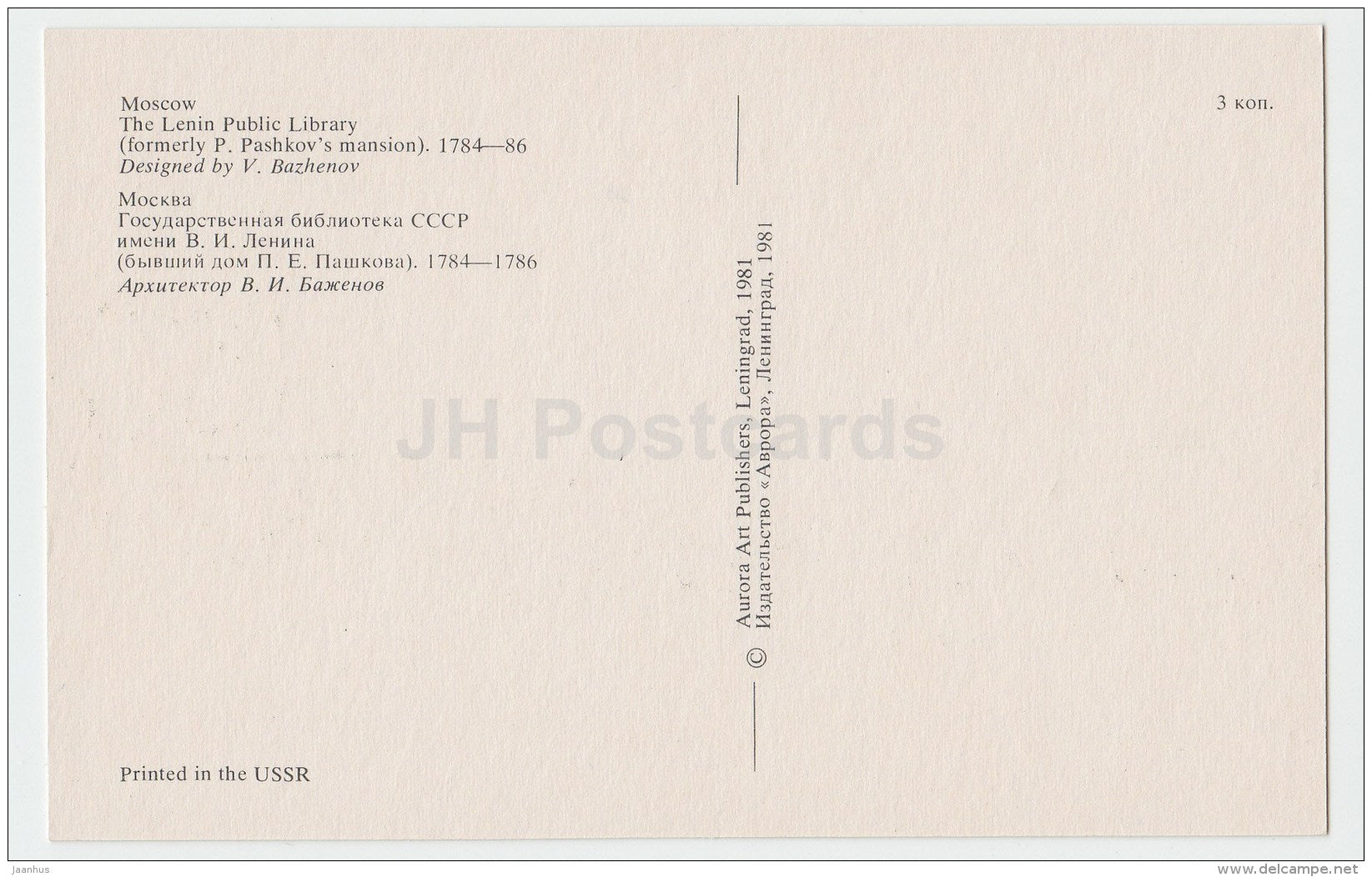Die Lenin Public Library – Moskau – 1981 – Russland UdSSR – unbenutzt