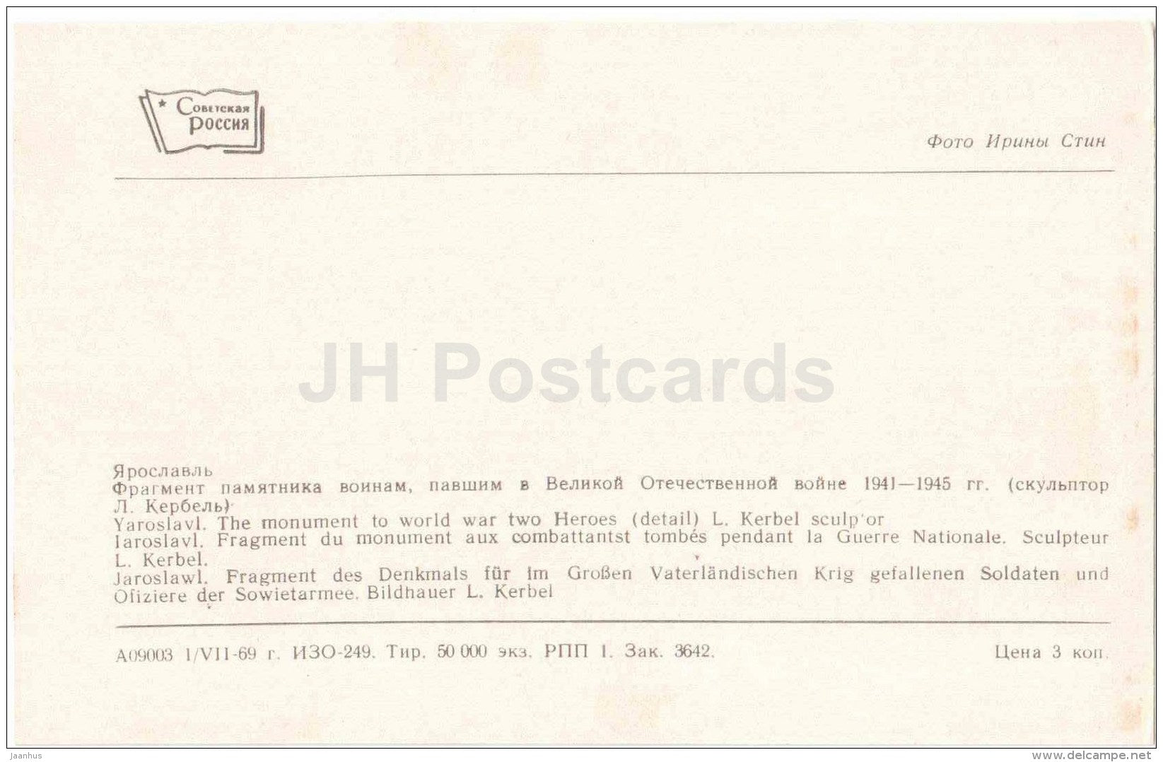 Das Denkmal für Helden des Zweiten Weltkriegs – Ewige Flamme – Jaroslawl – 1969 – Russland UdSSR – unbenutzt