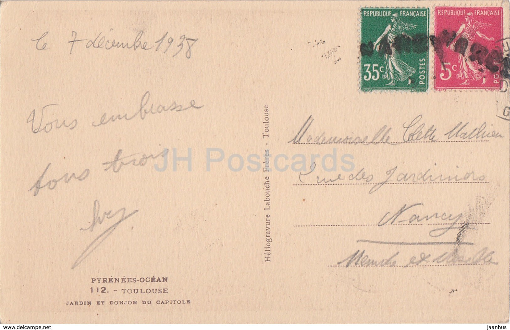 Toulouse - Jardin et Donjon du Capitole - Pyrenäen-Ozean - 112 - 1938 - alte Postkarte - Frankreich - gebraucht