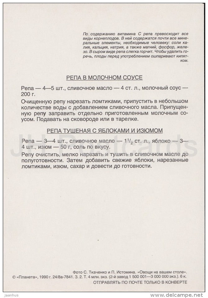Rüben in Milchsoße - Gemüsegerichte - Rezepte - 1990 - Russland UdSSR - unbenutzt