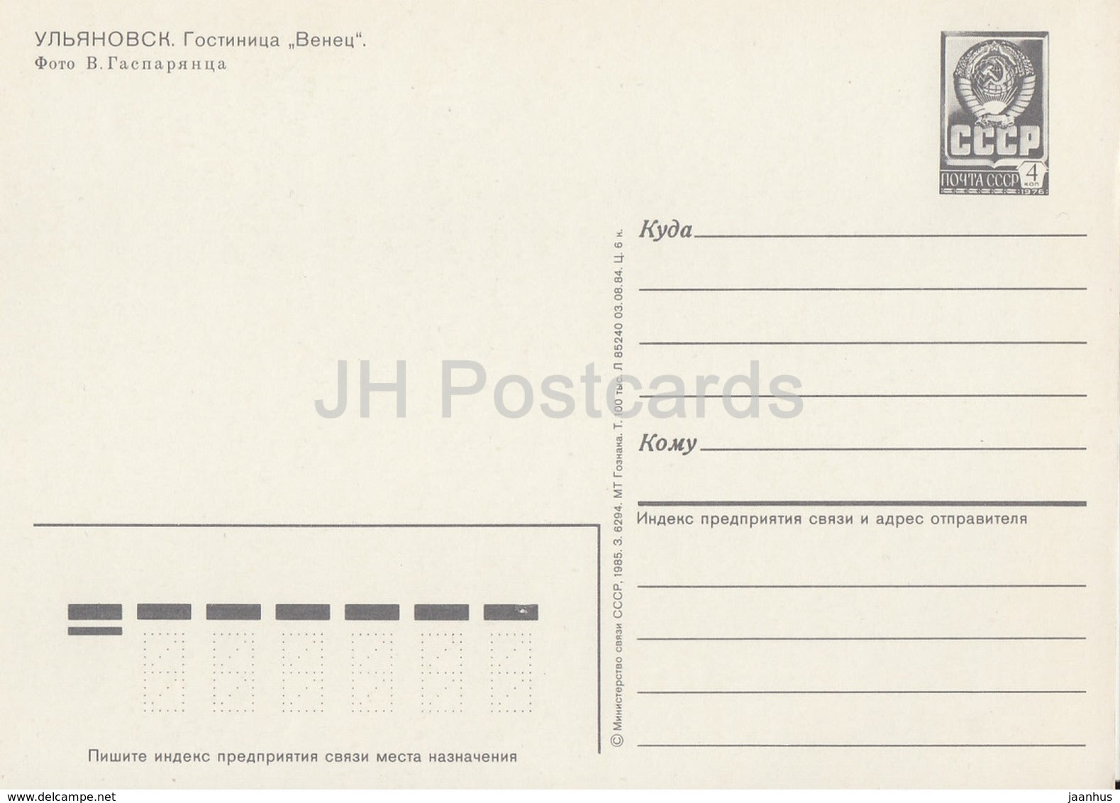 Uljanowsk - Hotel Venets - Ganzsache - 1985 - Russland UdSSR - unbenutzt