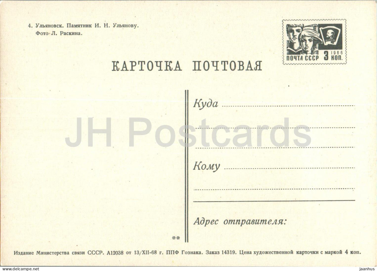 Uljanowsk - Denkmal für IN Uljanow - Ganzsache - 1968 - Russland UdSSR - unbenutzt