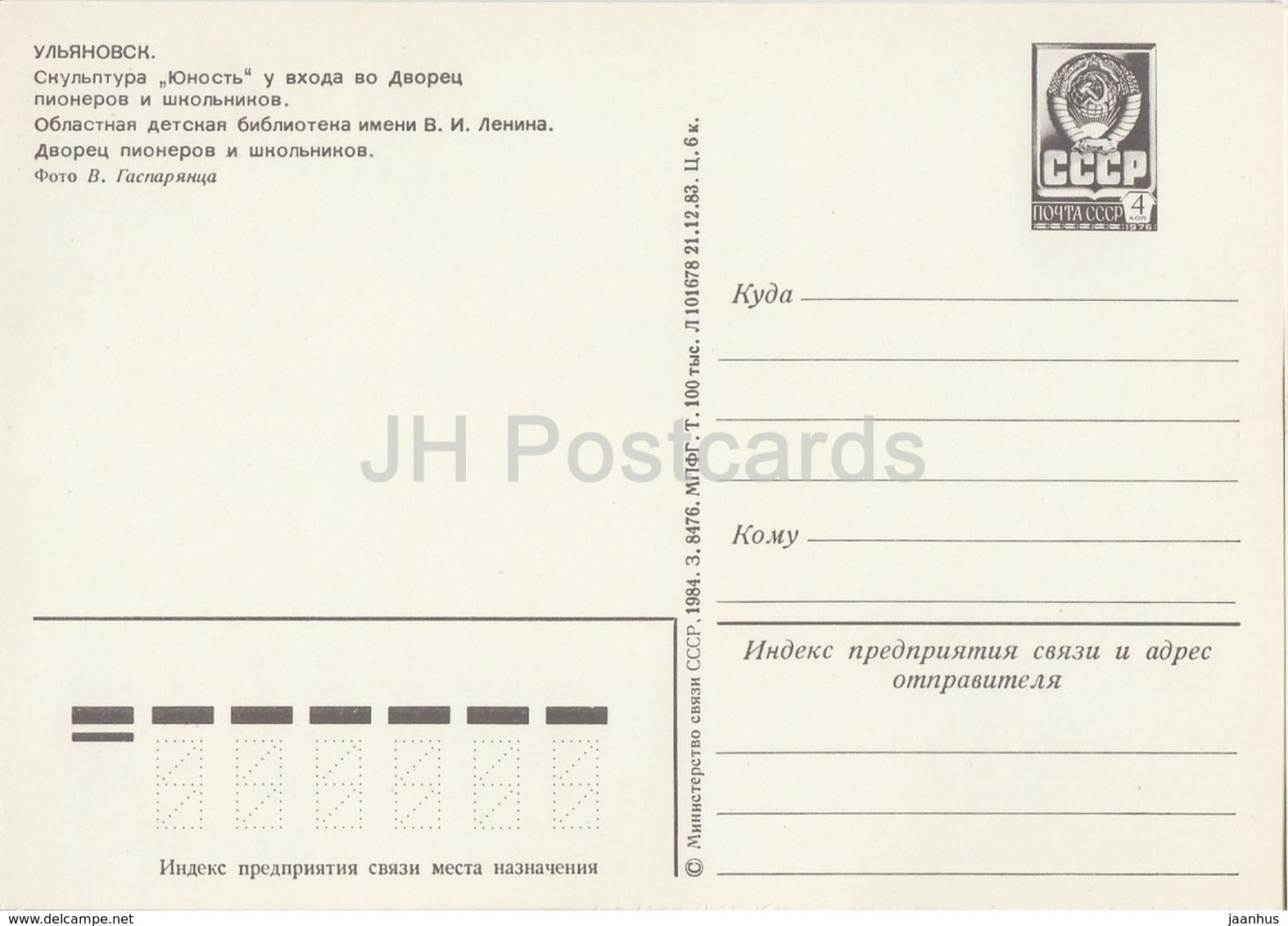 Uljanowsk - Skulptur Jugend - Regionale Kinderbibliothek - Ganzsachen des Pionierpalastes - 1984 - Russland UdSSR - unbenutzt