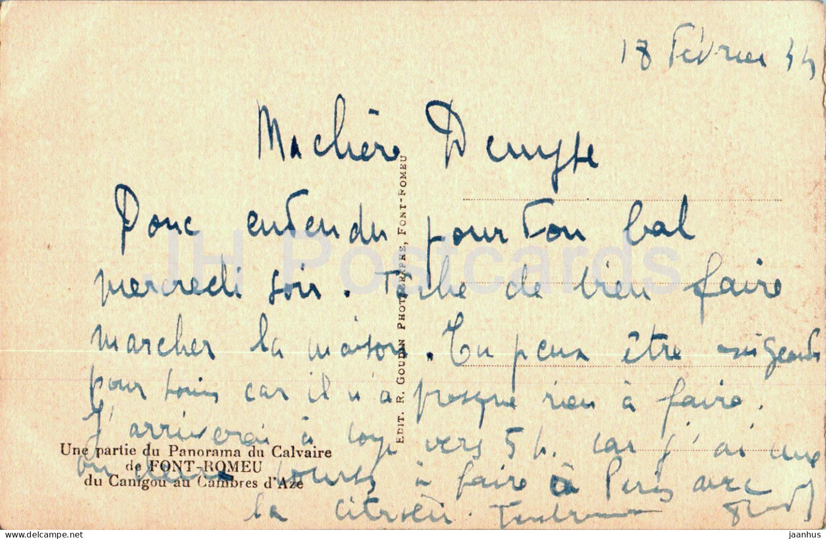 Un partie du Panorama du Calvaire de Font Romeu du Canigou au Canbres d'Aze – alte Postkarte – 1939 – Frankreich – gebraucht