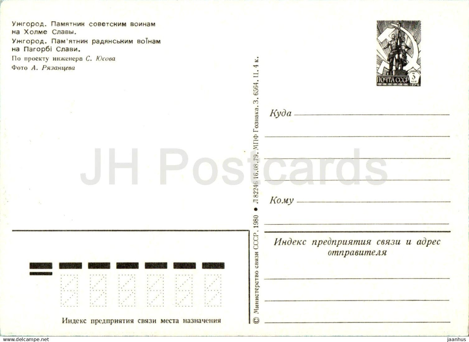 Uzhgorod - Uzhgorod - Denkmal für sowjetische Soldaten auf dem Hügel des Ruhms - Ganzsache - 1980 - Ukraine UdSSR - unbenutzt
