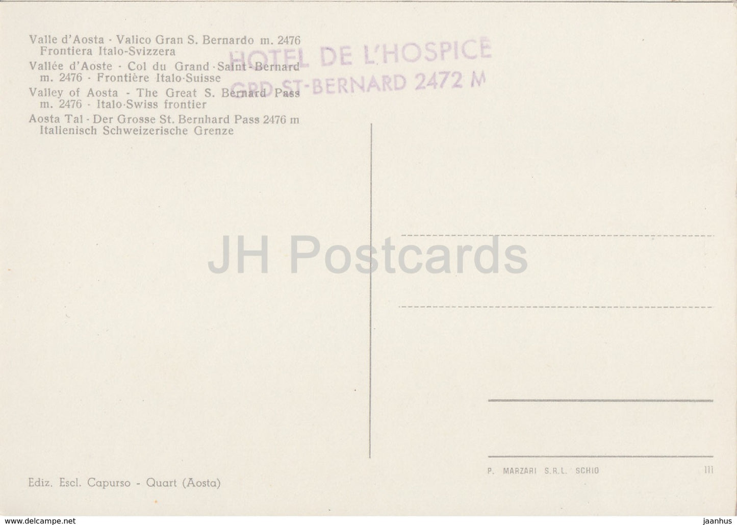 Valle d'Aosta - Valico S Bernardo - Aostatal - St. Bernatd-Hund - Italien - unbenutzt