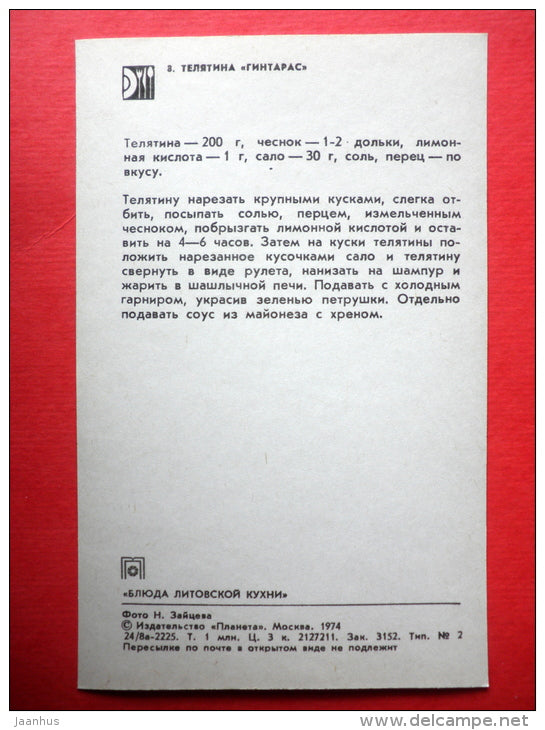 Kalbs-Gintaras – Tomate – Rezepte – litauische Gerichte – 1974 – Russland UdSSR – unbenutzt