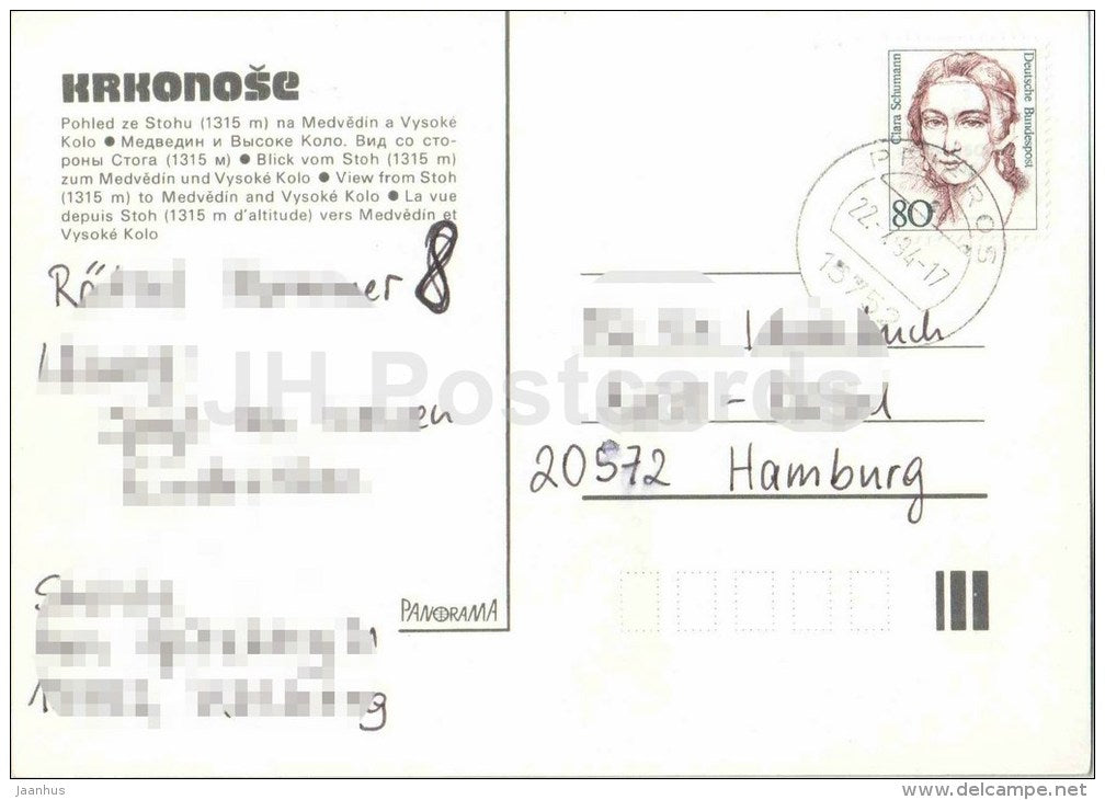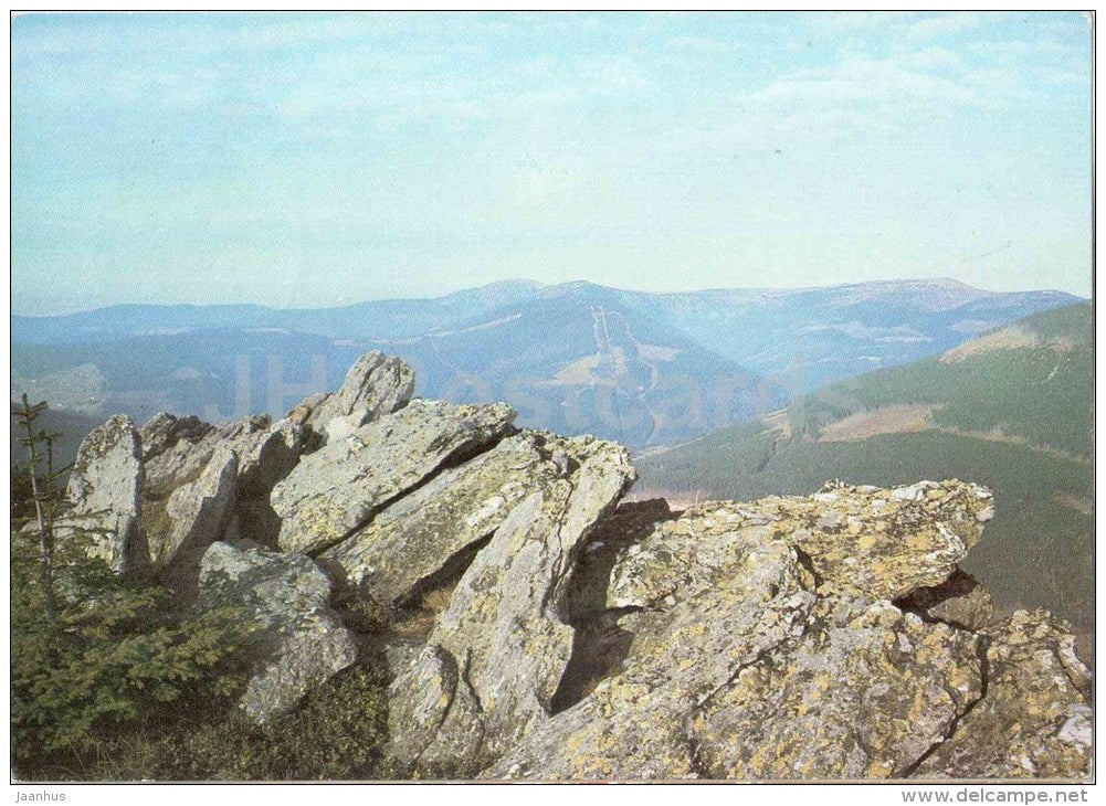 Blick von Stoh, 1315 auf Medvedin und Vysoke Kolo - Berge - Riesengebirge - Tschechoslowakei - Tschechisch - gebraucht 1994