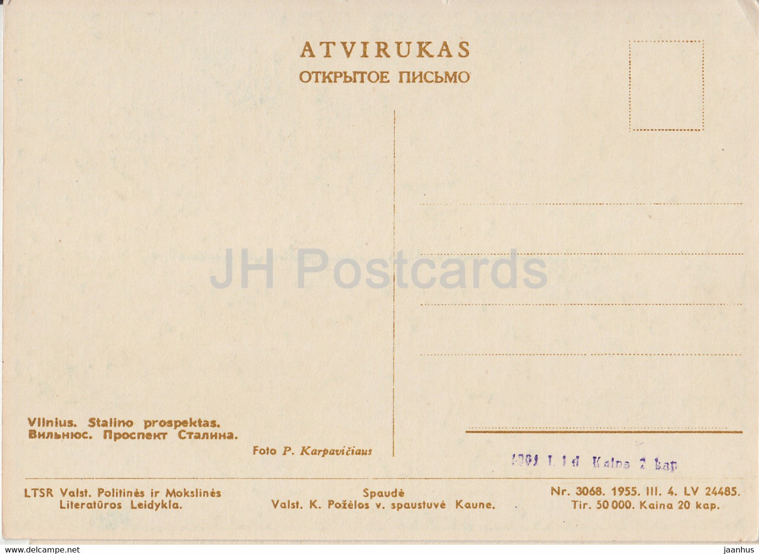 Vilnius - Stalin-Prospekt - Allee - Bus - 1955 - Litauen UdSSR - unbenutzt