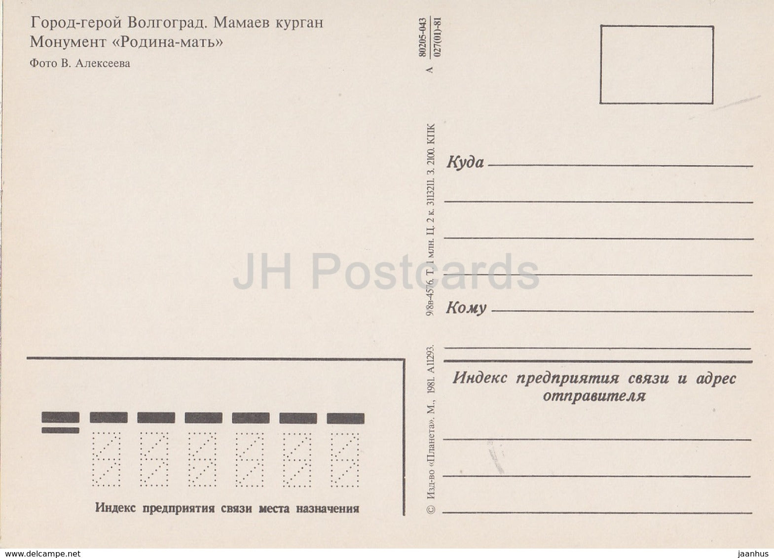 Wolgograd – Mamajew-Hügel – Mutterlandsdenkmal – 1981 – Russland UdSSR – unbenutzt