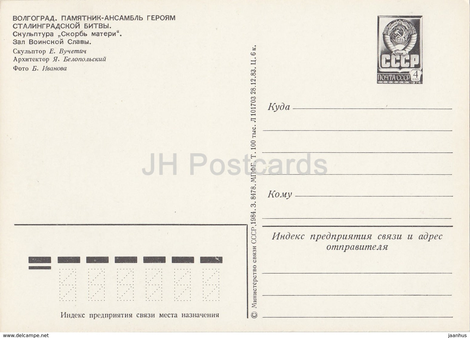 Wolgograd – Skulptur „Mutterleid“ – Denkmal der Schlacht von Stalingrad – Ganzsache – 1984 – Russland UdSSR – unbenutzt