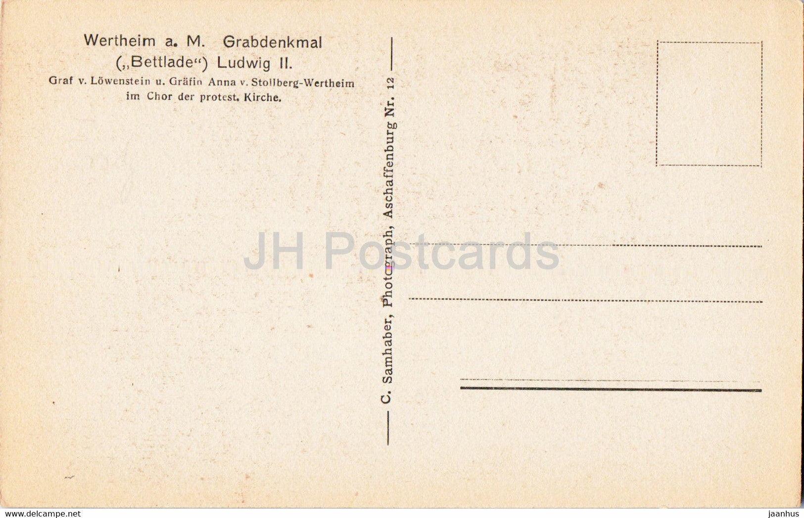Wertheim a M - Grabdenkmal Bettlade Ludwig II. im Chor der Protest Kirche - Kirche - alte Postkarte - Deutschland - unbenutzt