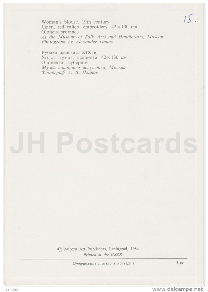 Damenbluse – Provinz Olonets – Russische Volkskunst – 1984 – Russland UdSSR – unbenutzt