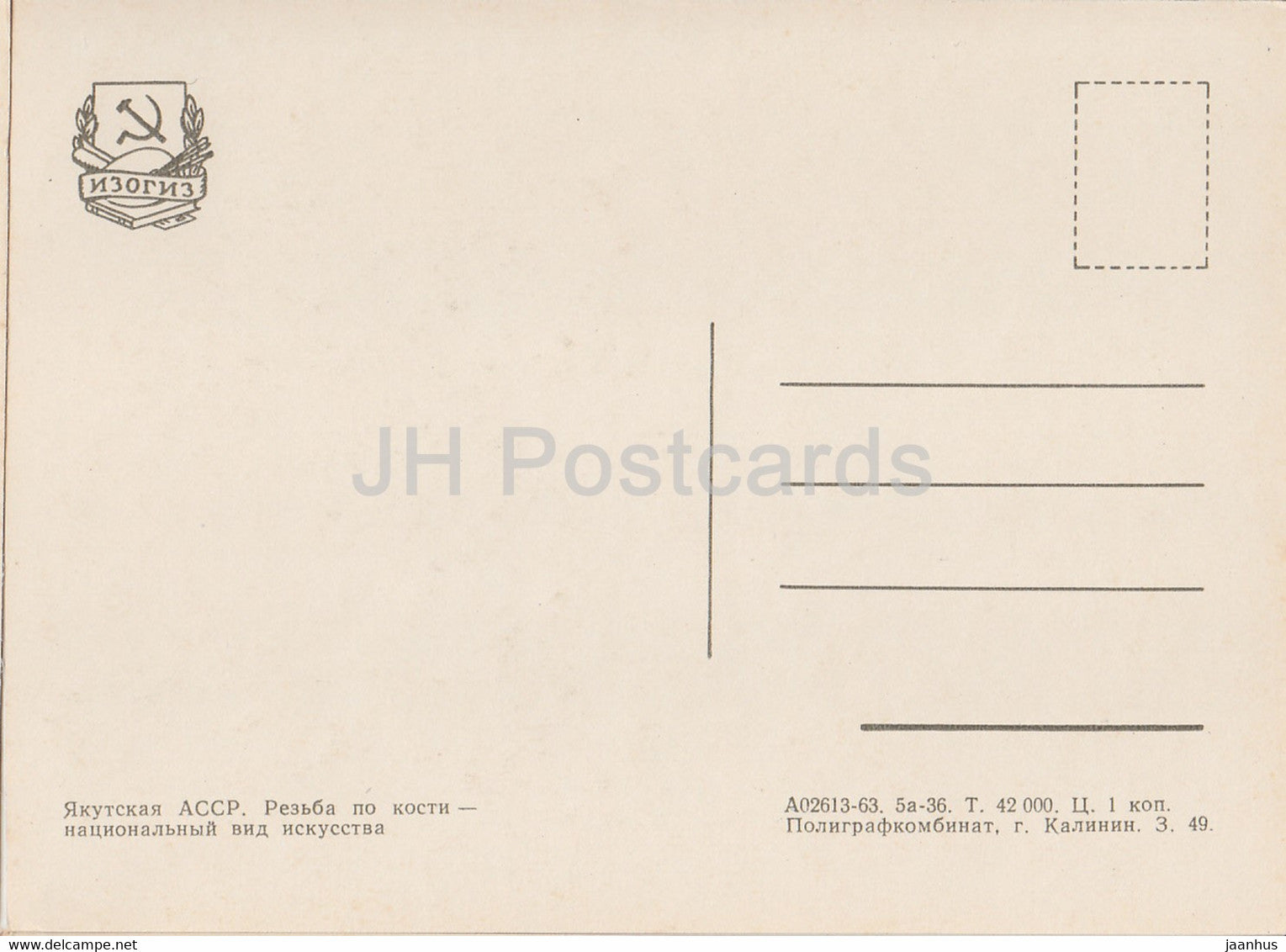 Jakutien – Republik Sacha – Knochenschnitzerei – nationale Kunstform – 1963 – Russland UdSSR – unbenutzt