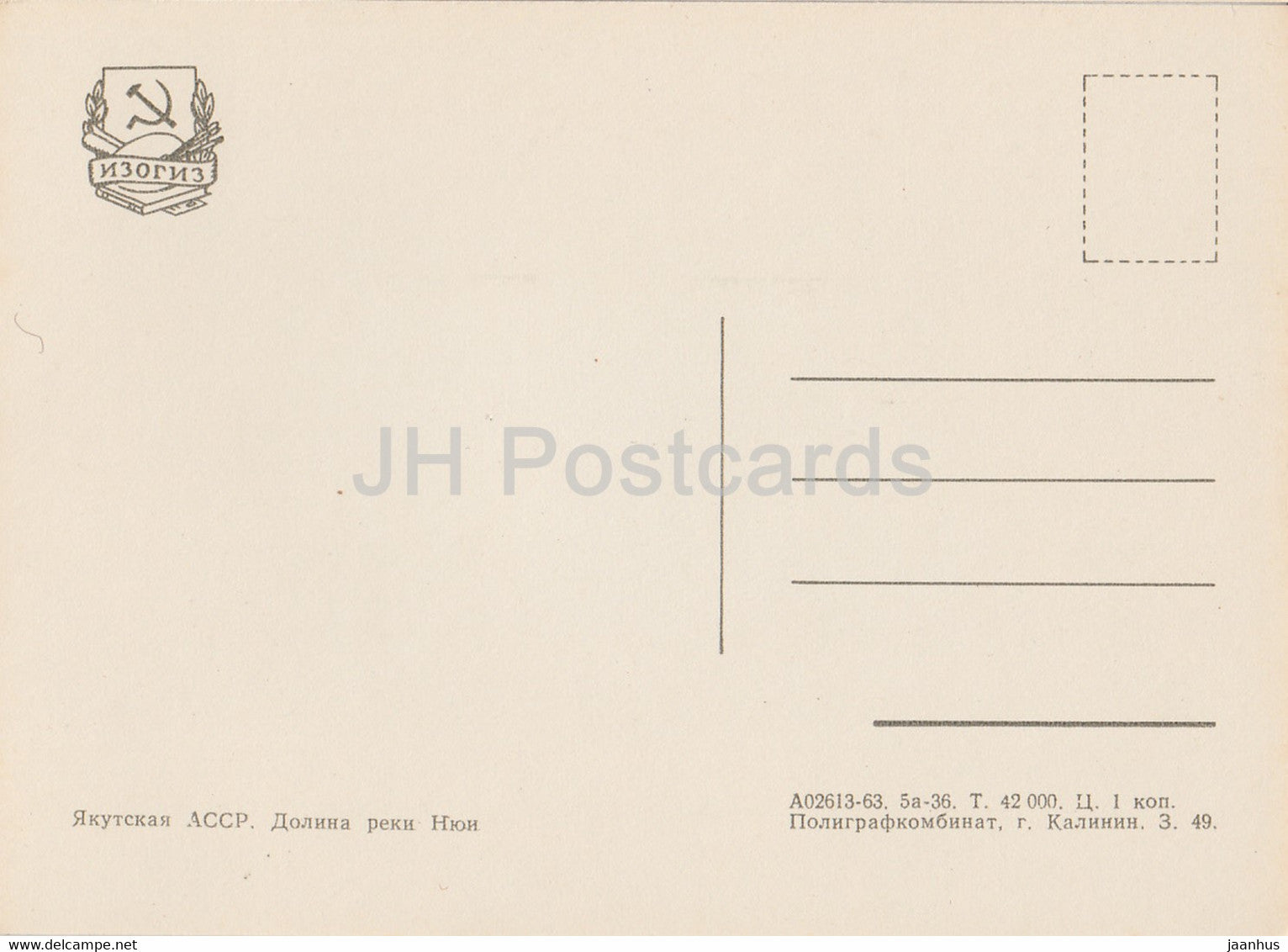 Jakutien – Republik Sacha – Tal des Flusses Nyui – 1963 – Russland UdSSR – unbenutzt