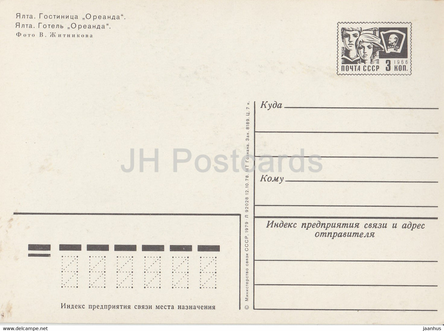 Jalta - Hotel Oreanda - Strand - Ganzsache - 1979 - Ukraine UdSSR - unbenutzt