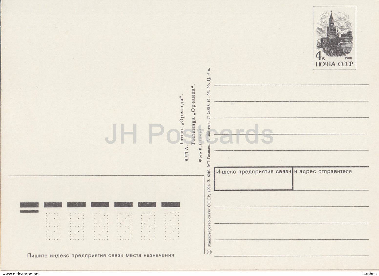 Jalta - Hotel Oreanda - Ganzsache - 1991 - Ukraine UdSSR - unbenutzt