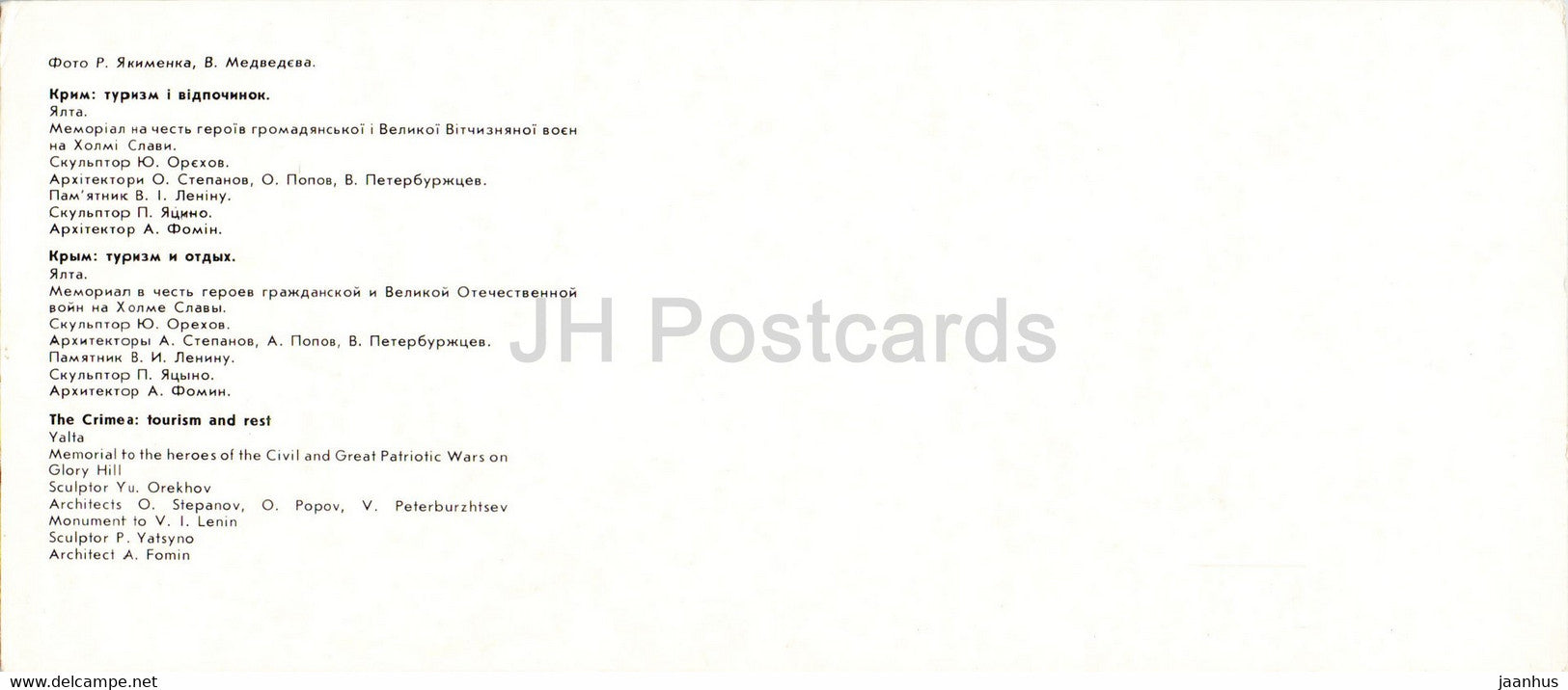 Jalta – Denkmal für die Helden des Bürgerkriegs auf dem Glory Hill – Denkmal für Lenin Krim – 1985 – Ukraine UdSSR – unbenutzt
