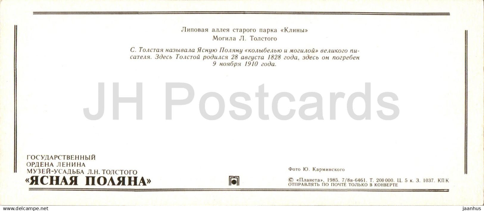 Jasnaja Poljana - Tolstoi-Museum - Lindenallee des alten Parks Kliny - Grab - 1985 - Russland UdSSR - unbenutzt