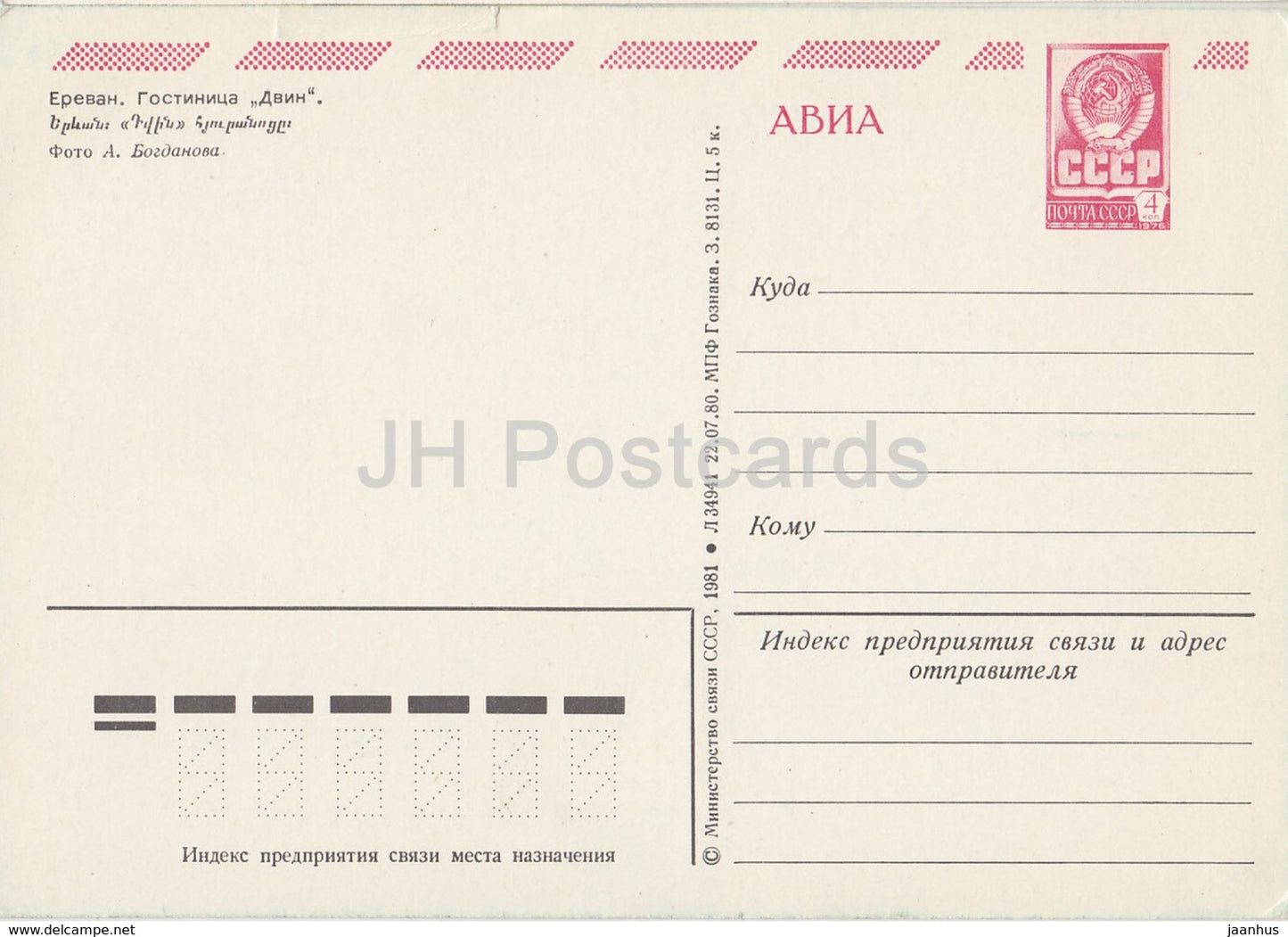 Eriwan - Hotel Dvin - AVIA - Ganzsache - 1981 - Armenien UdSSR - unbenutzt