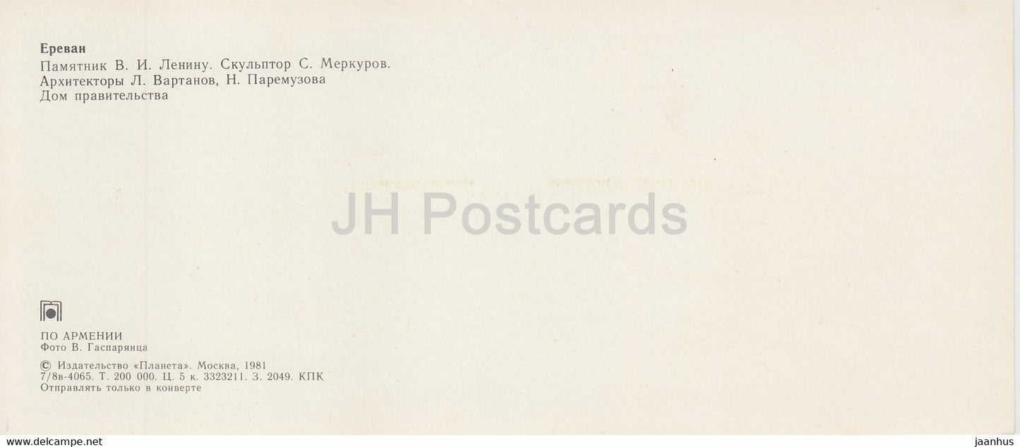Jerewan – Denkmal für Lenin – Regierungsgebäude – Brunnen – 1981 – Armenien UdSSR – unbenutzt