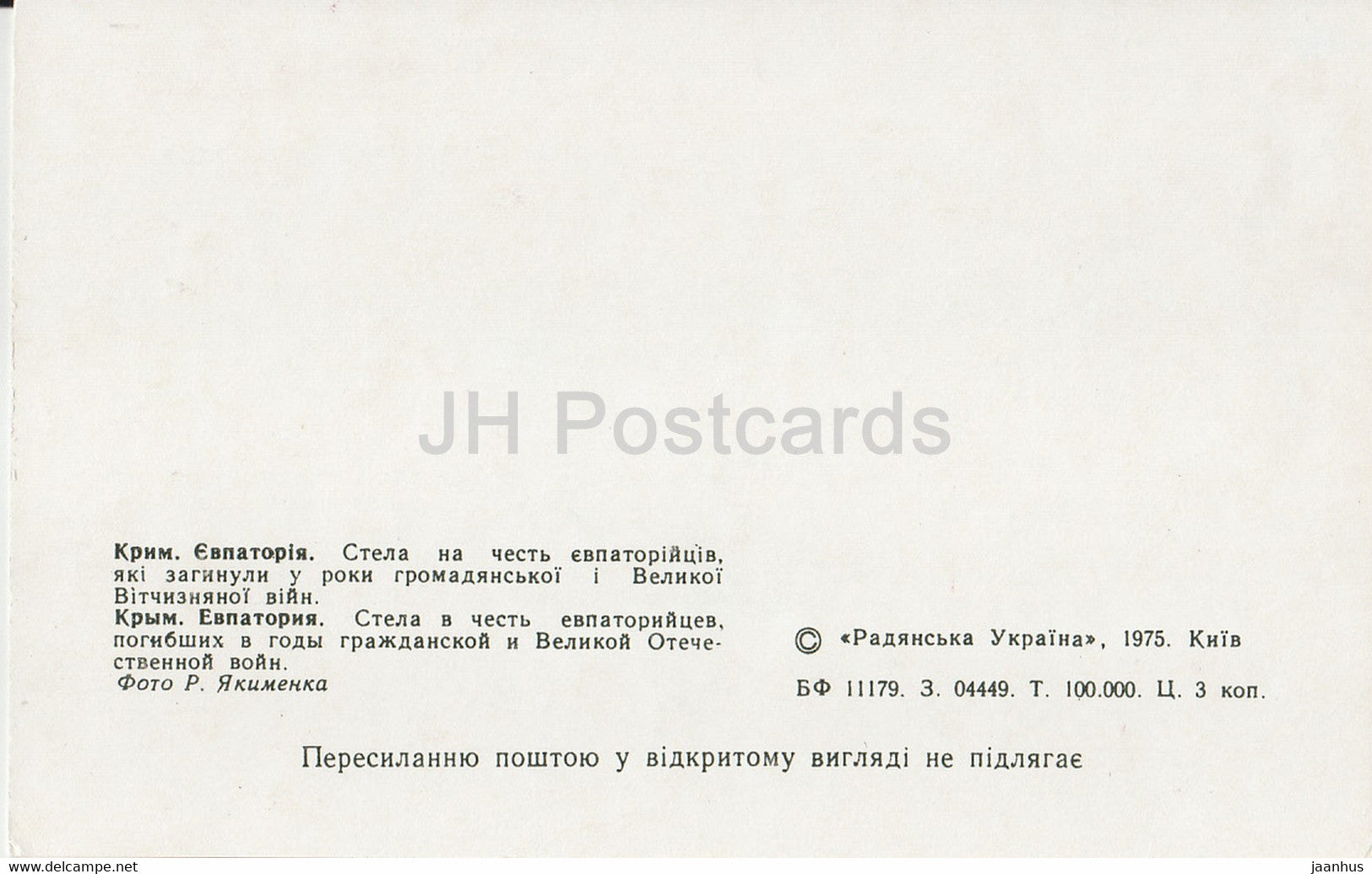 Jewpatorija – Jewpatoria – Stele zu Ehren der im Zweiten Weltkrieg gefallenen Bürger Jewpatorias – Krim – 1975 – Ukraine UdSSR – unbenutzt
