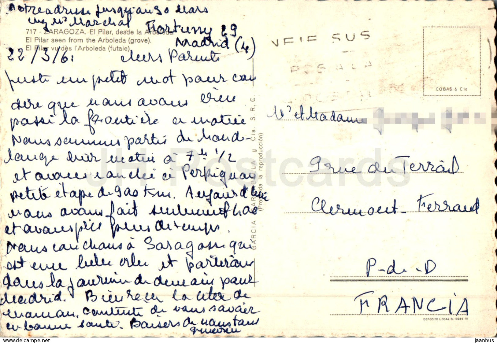 Zaragoza – El Pilar desde la Arboleda – El Pilar von der Arboleda aus gesehen – 717 – 1961 – Spanien – gebraucht