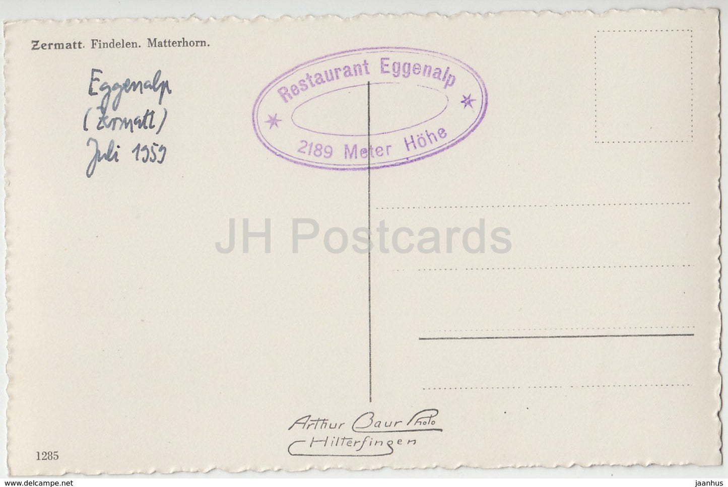 Zermatt - Findelen - Matterhorn - Restaurant Eggenalp - 1285 - Schweiz - 1959 - gebraucht