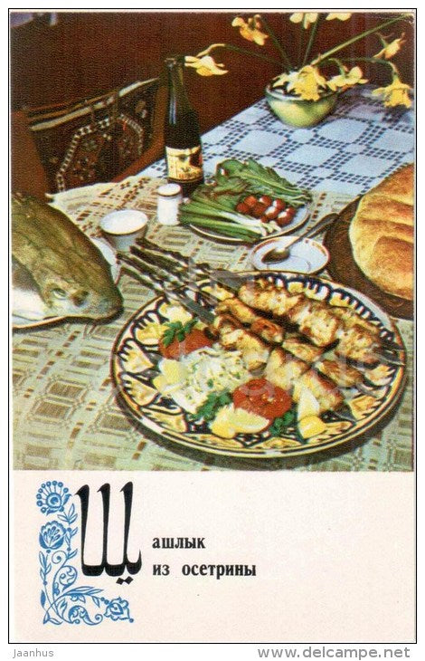 brochettes d'esturgeon - shashlyk - plats - cuisine d'Azerbaïdjan - 1974 - Russie URSS - inutilisé