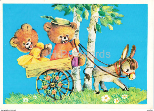 Carte de vœux de L. Manilova - ours - âne - 1984 - Russie URSS - inutilisée
