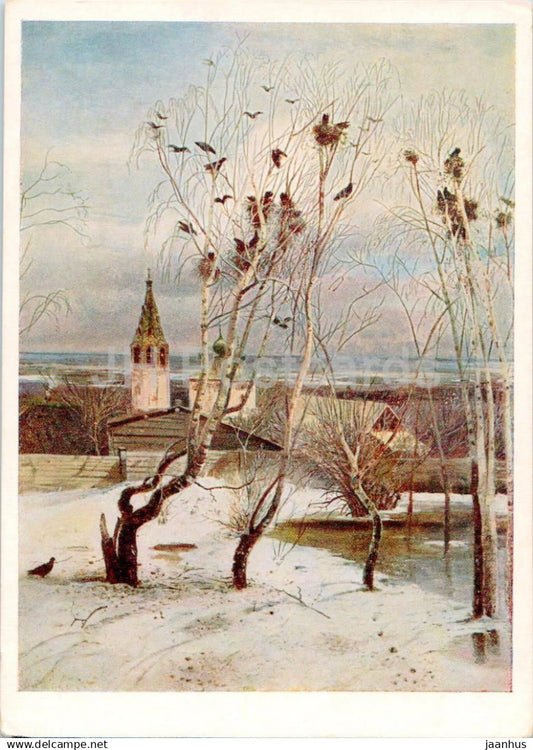 peinture de K. Savrasov - Les corbeaux sont arrivés - oiseaux - art russe - 1955 - Russie URSS - inutilisé