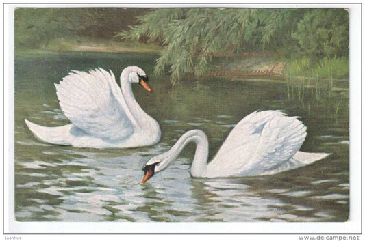 illustration - Cygne - oiseaux - 953 - carte postale ancienne - diffusée en Estonie en 1925, Tallinn - utilisée