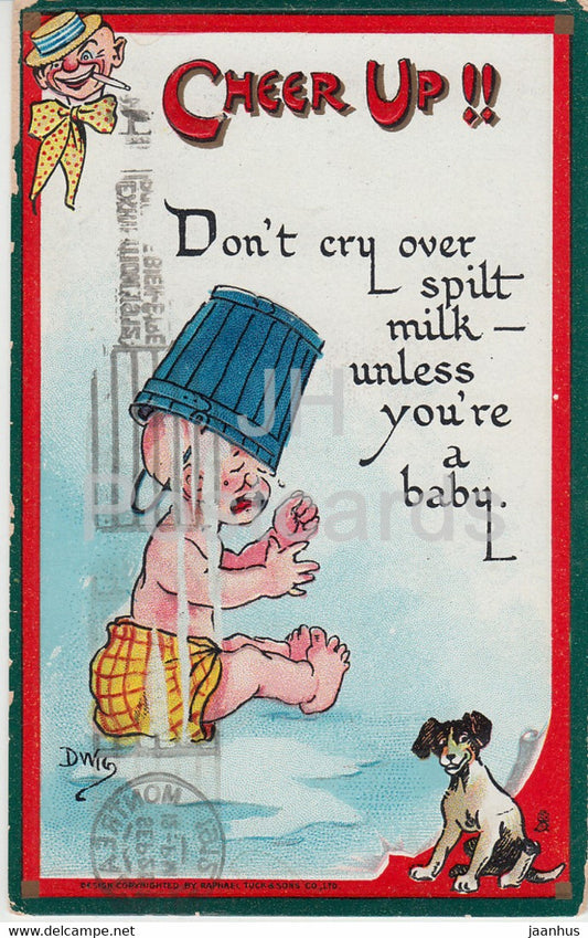 Cheer Up - Don't Cry over split milk - chien - Dwig - illustration - Tuck & Sons - 176 carte postale ancienne - 1912 - Canada - utilisé
