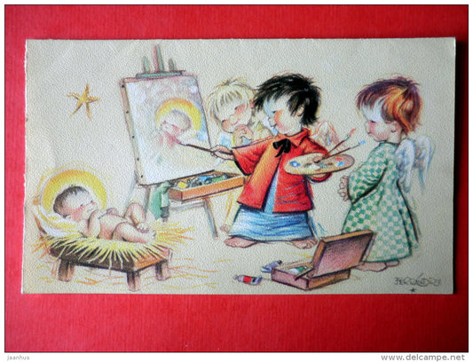 carte de voeux - Peinture pour enfants - bébé - imprimée sur papier de soie - Canada - inutilisée