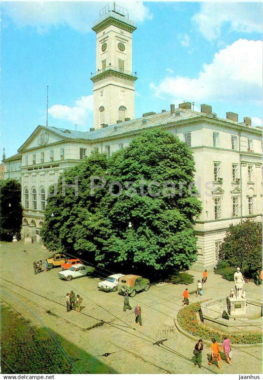 Lviv - bâtiment du comité exécutif du conseil municipal - voiture - entier postal - 1984 - Ukraine URSS - non utilisé